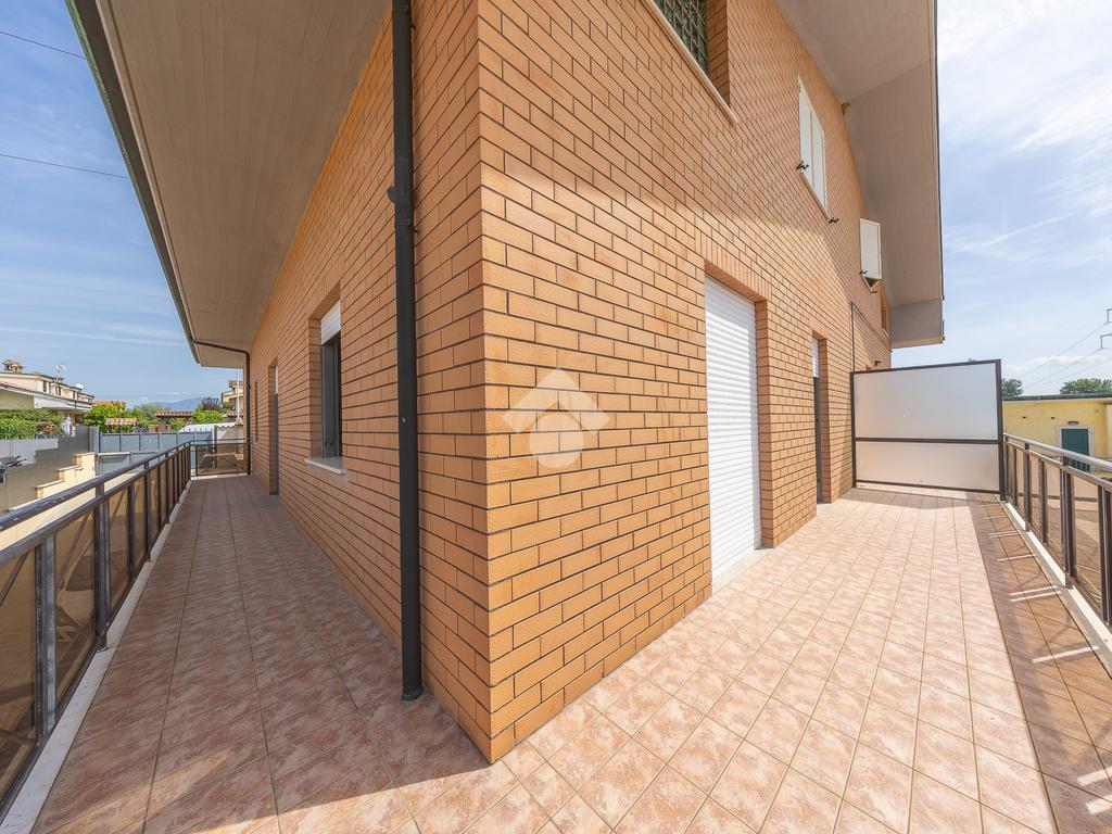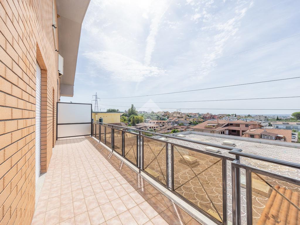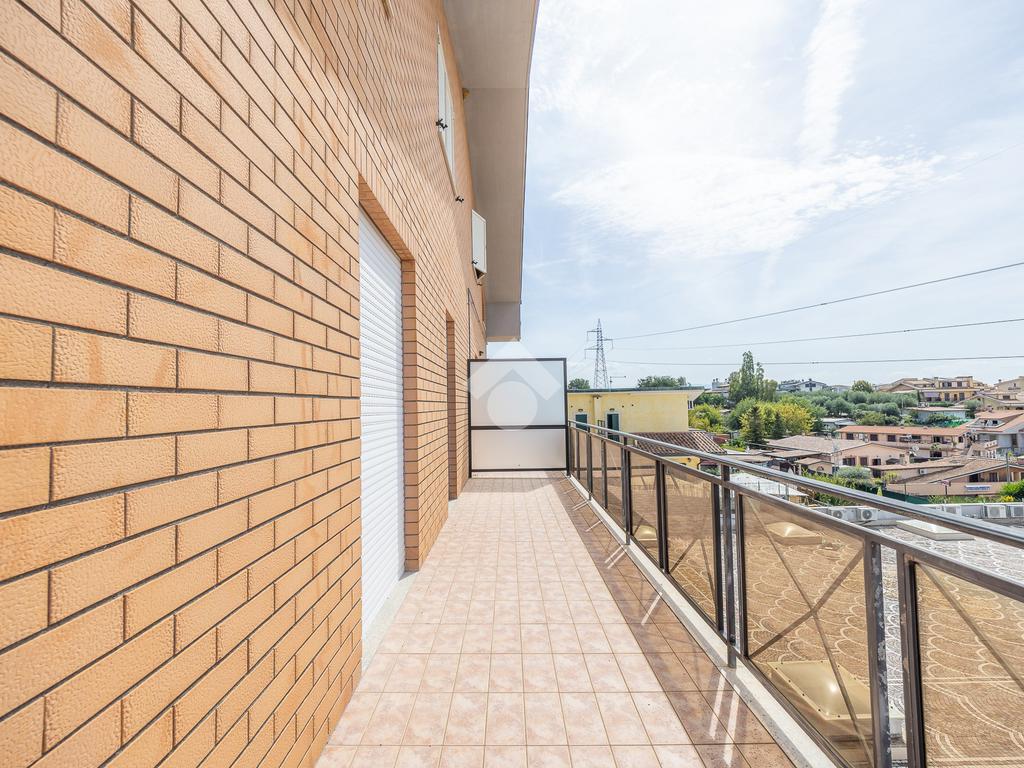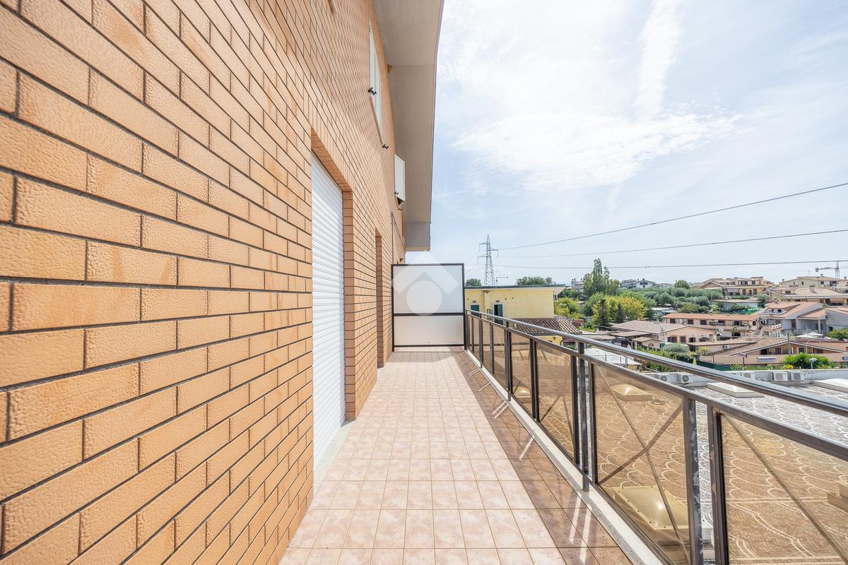 Varcata la soglia di casa, l'appartamento presenta immediatamente un corridoio che conduce al luminoso ed ampio soggiorno dove è possibile accedere, grazie alla presenza di una porta finestra, direttamente al balcone terrazzato semi perimetrale. Qui, la visuale si apre interamente sul panorama circostante.