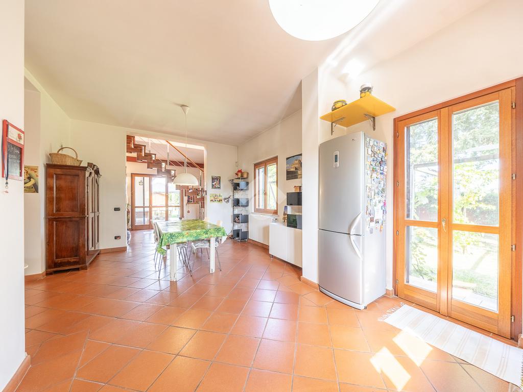 Luminoso, spazioso, confortevole, il soggiorno presenta un'ampia sala con cucina a vista comodamente separata dalla zona giorno da uno splendido camino dallo stile moderno. Gli ambienti all'interno di questa soluzione sono stati creati per garantire il massimo della funzionalità e della praticità a tutti i componenti della famiglia. Il piano si completa infine di un grande bagno con cabina doccia.
