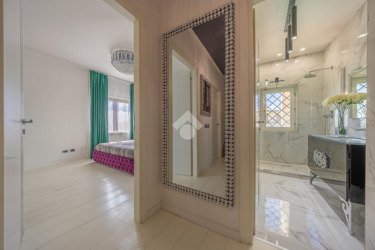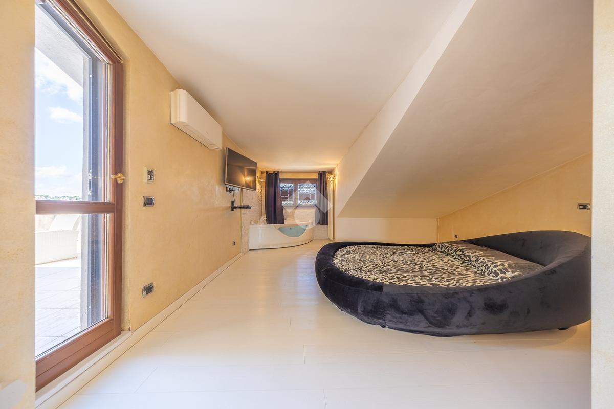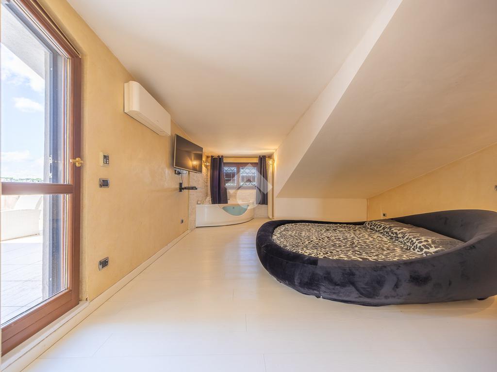 Il piano superiore ospita un'ampia camera da letto matrimoniale con vasca idromassaggio a vista, dal quale è possibile accedere direttamente al terrazzo. Il piano comprende inoltre un ulteriore bagno finestrato.