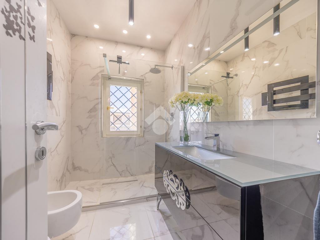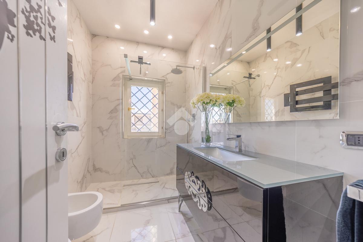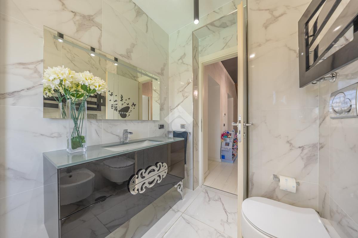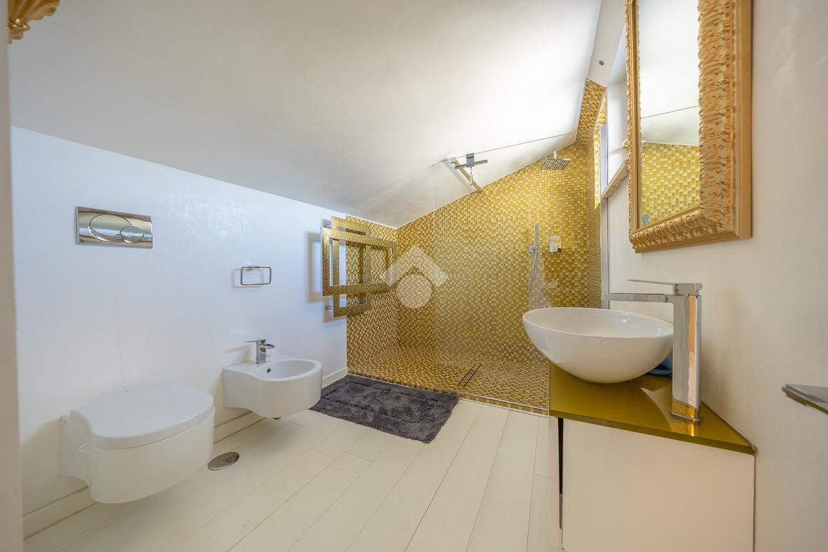 Il piano superiore ospita un'ampia camera da letto matrimoniale con vasca idromassaggio a vista, dal quale è possibile accedere direttamente al terrazzo. Il piano comprende inoltre un ulteriore bagno finestrato.