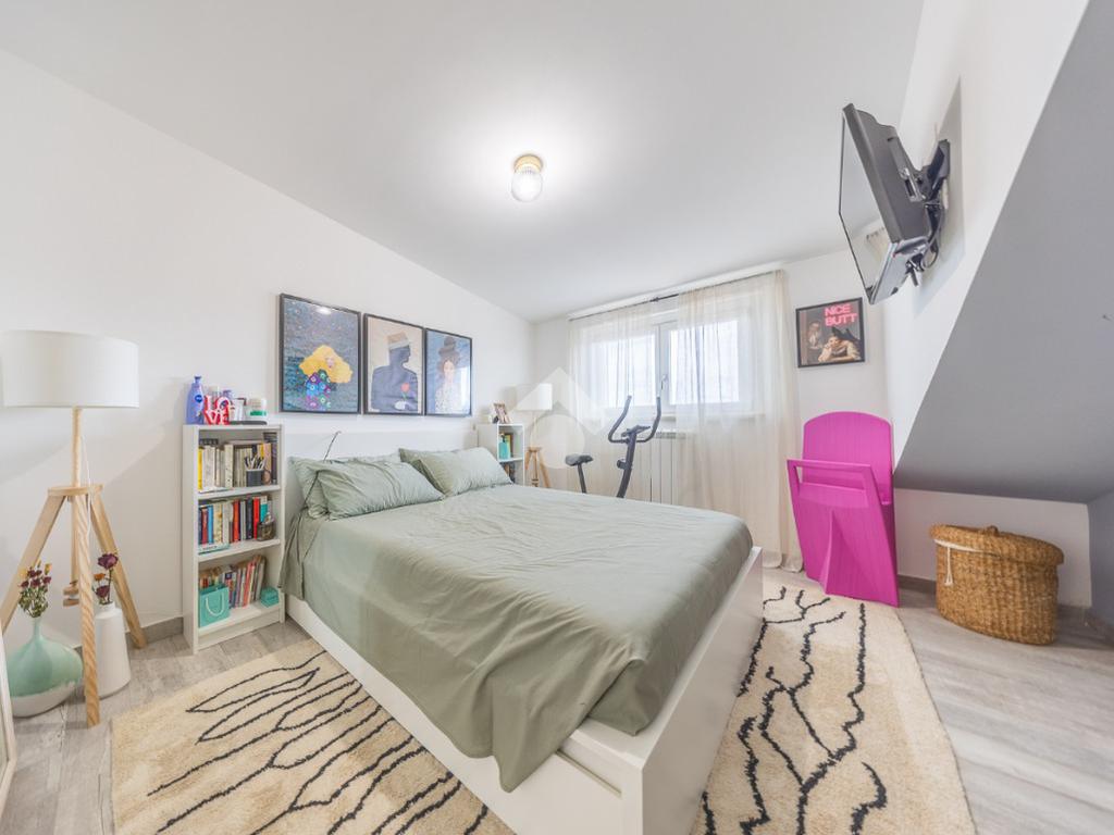 Al piano primo c’è la zona notte, composta da una spaziosa camera matrimoniale, un secondo bagno con doccia e una cameretta servita da terrazzino privato.